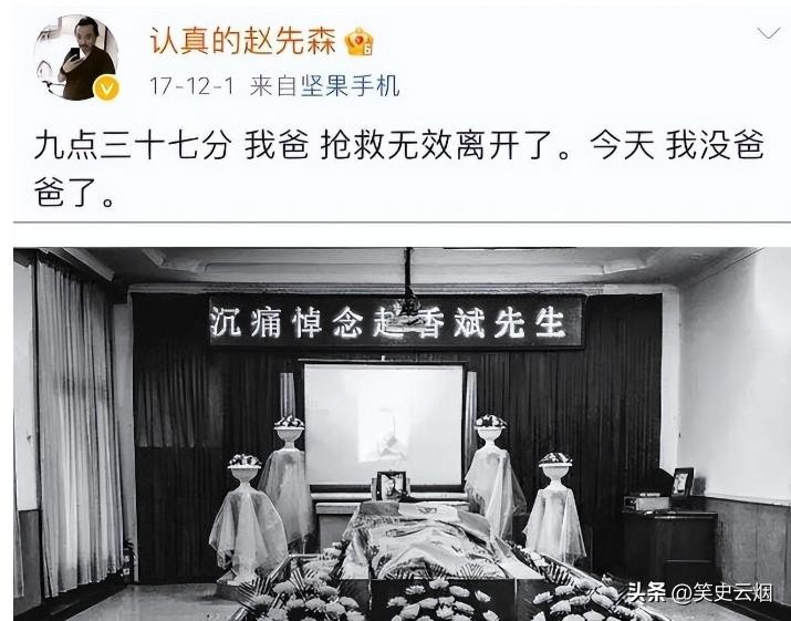 赵勇在父亲去世之后,在社交平台上了发了一句话说:我没爸爸了。