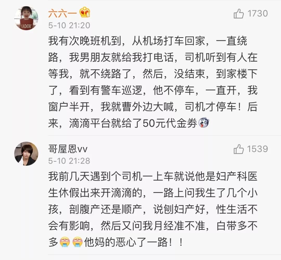 但在这条微博下面,不少网友指责平台审核不严,呼吁加强准入制度,还有网友也晒出了自己在乘坐网约车时遭遇骚扰的经历。