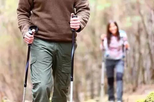 登山杖将脚的部分运动量转移至手及上半身,可以减轻下半身肌肉的负担,但使用方法要正确,登山杖应该同脚并排,与手呈90°角度,懂得运用才不会成为负担。