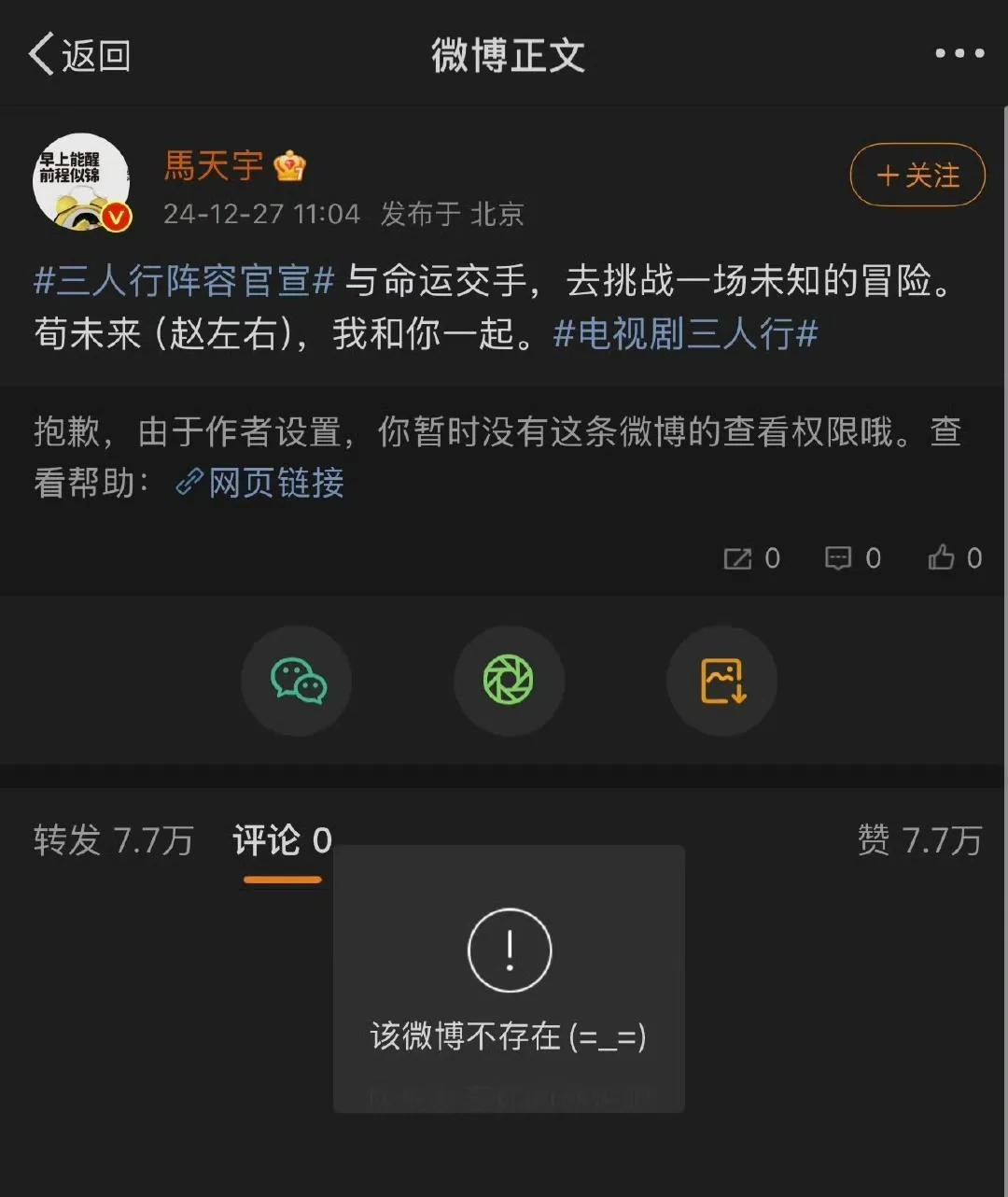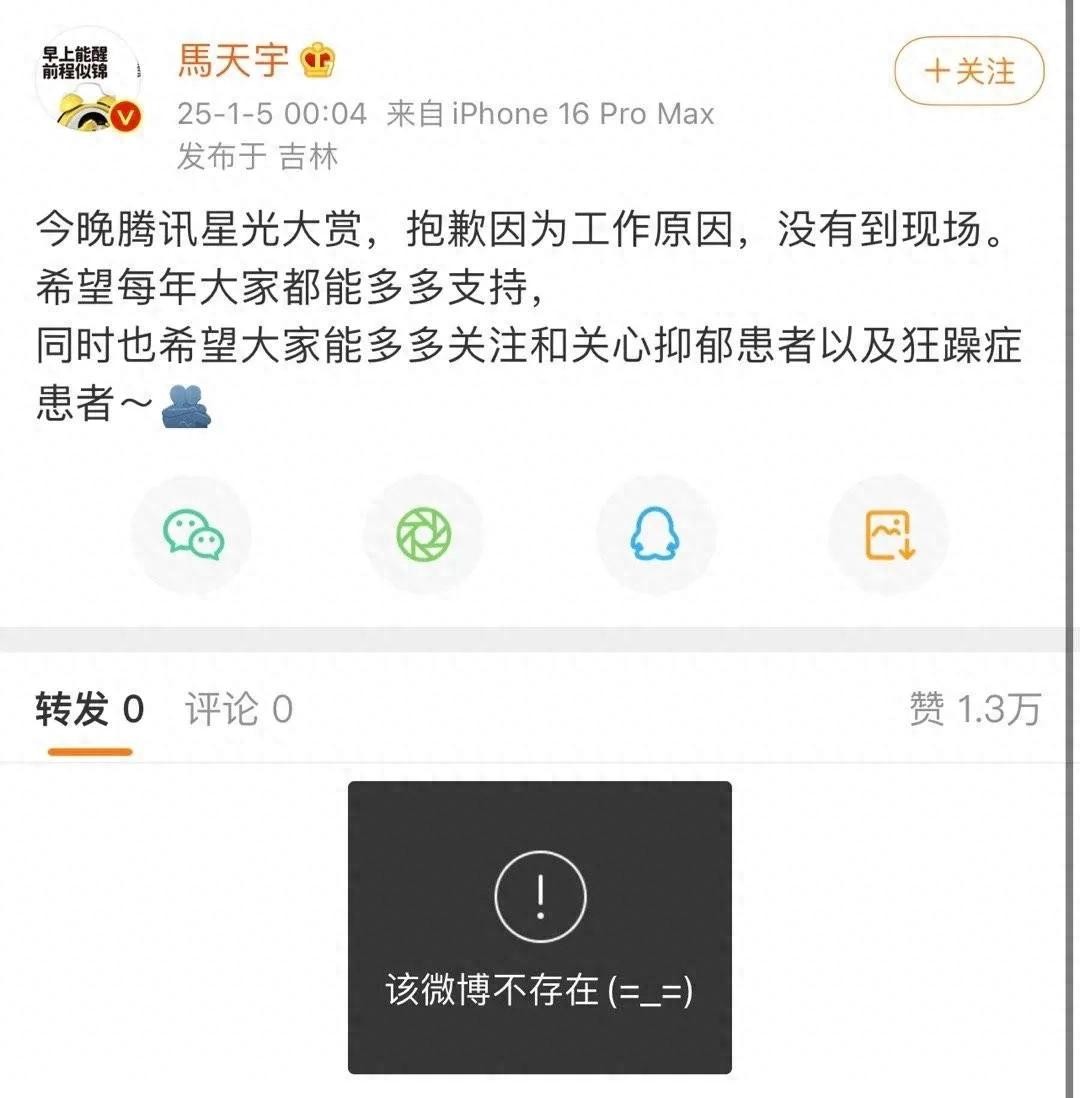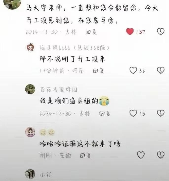 粉丝的留言更成了证据,12月30日,还没有看到马天宇。