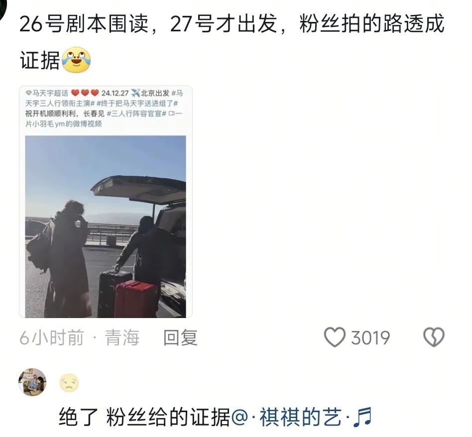 又是粉丝给的证据,12月26日围读,12月27日马天宇还被拍到在路上。