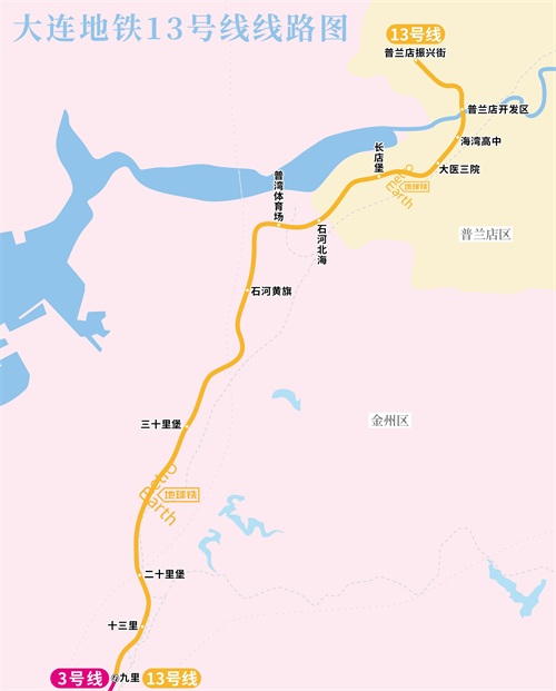 就在去年年底开通运营的13号线,将普兰店区、金州区连接了起来。13号线可以在【九里站】换乘3号线,直达大连市区。
