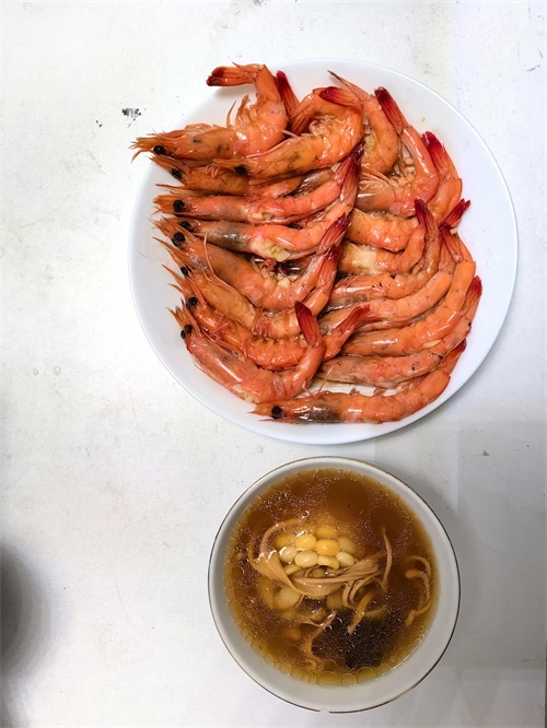 16点回家做饭,懒人餐(玉米莲子虫草花红枣百合骨头汤、电饭煲蒸蒜蓉虾)。