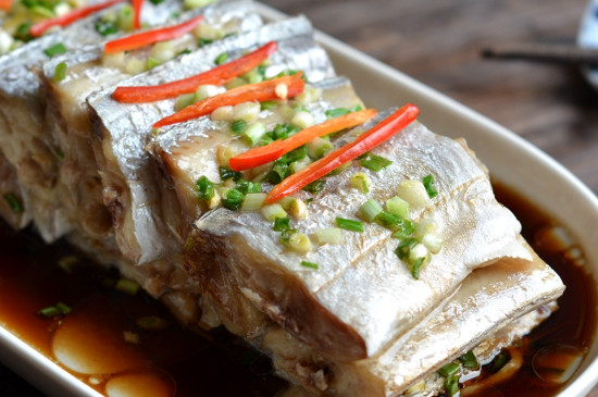 取出蒸好的鱼肉淋上蒸鱼豉油口感更佳,再摆上各种红辣椒丝和葱丝最后淋上热油,喜欢吃辣的人还可以在蒸鱼上淋上一些辣椒酱再撒热油,可以根据个人的喜好调整口感,清蒸带鱼可以更全面的保存其营养,口感更鲜嫩清鲜。