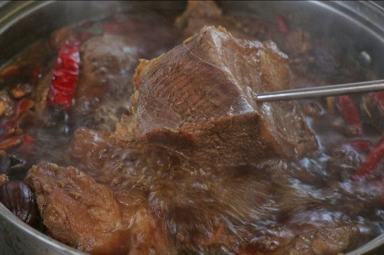 关火后,不要捞出来,让牛肉在里面浸泡几个小时再取出来,可以更入味,这是第二“泡”。