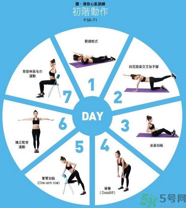 ★此为瘦整体小腹的三周计画,一天只要一个动作,持续进行三个礼拜即可。举例来说,第一天进行「小腹核心肌训练」,第二天进行「腰背核心肌训练」,第三天则进行「侧腹部核心肌训练」,以这样的模式不间断地循环进行三个礼拜。这样的运动计画可以使各部位运动後有两天的休息期来减低肌肉受伤率,并有效提高瘦身效果。