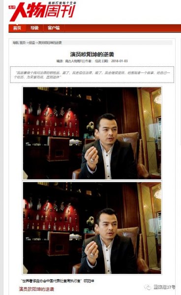 《南方人物周刊》于2018年1月3日刊发的《演员欧阳坤的逆袭》。网页截图