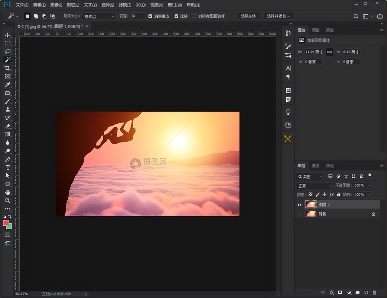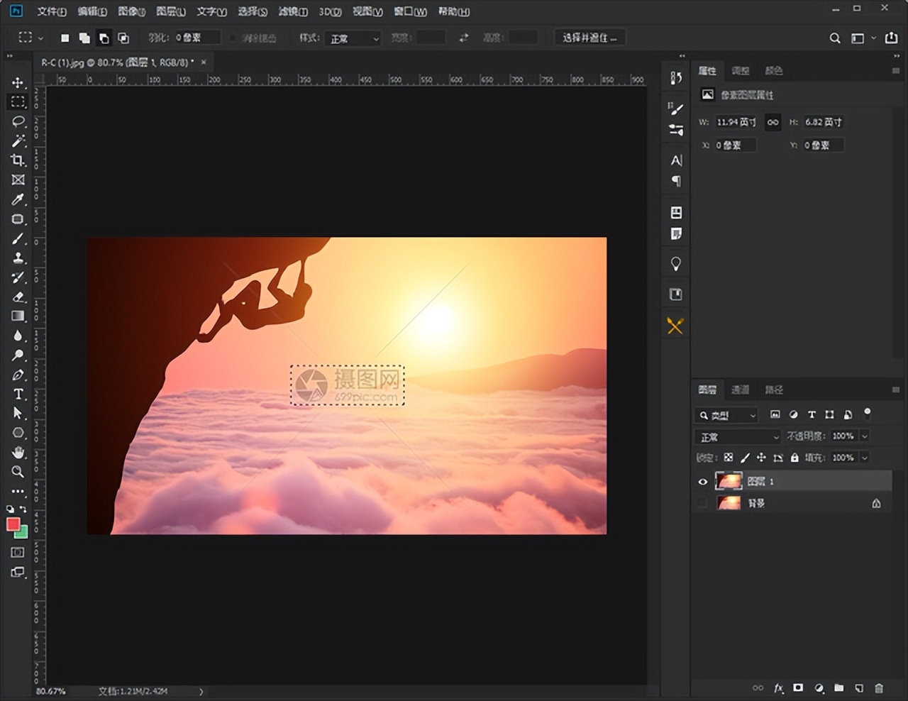 1.首先我们在网上随意找一张带水印的素材图,将其拖入PS中