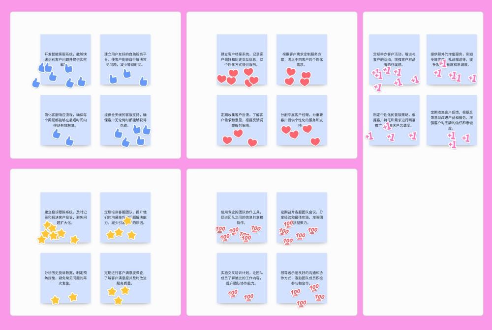 客户服务体验改善计划头脑风暴模板是一个集思广益的过程,旨在收集团队成员关于如何改进客户服务体验的创意和建议。这个模板帮助公司不断优化客户服务体验,满足客户需求,提升市场竞争力。
