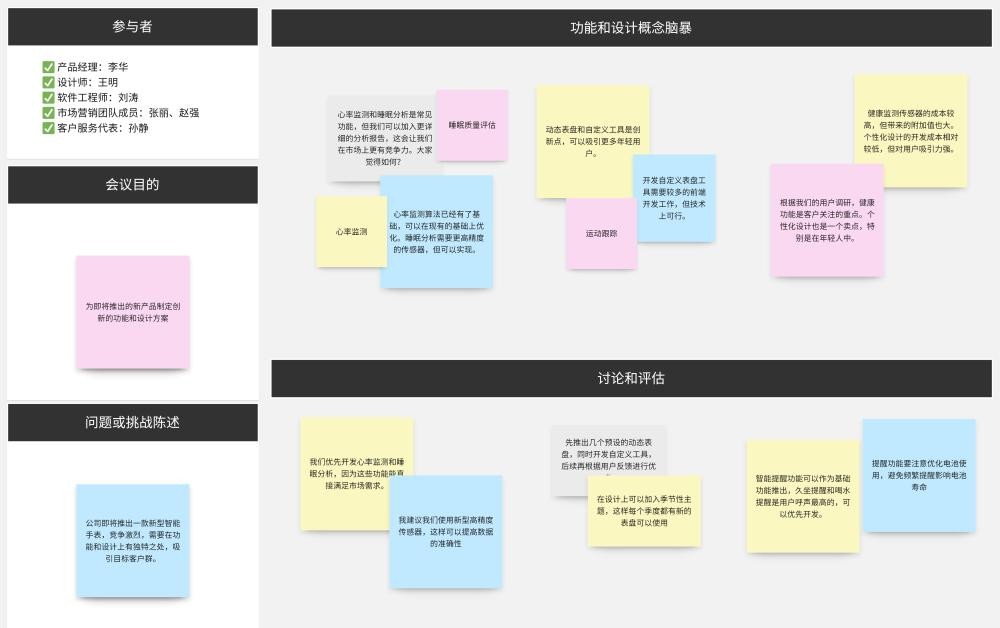 此模板专注于新产品的市场推广策略,通过集体讨论激发创意和创新想法。它帮助团队识别市场机会和挑战,制定有效的市场推广计划。这个模板是新产品顺利进入市场并取得成功的有力支持。