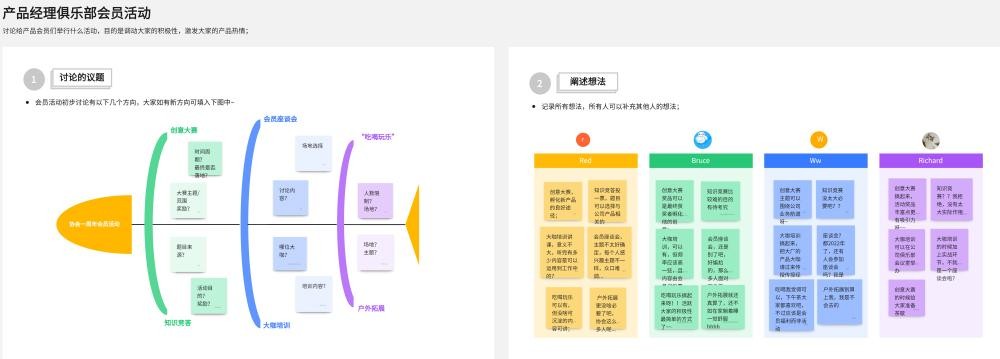 产品经理俱乐部会员活动头脑风暴模板鼓励产品经理分享经验,提出新的产品管理思路或解决问题的建议。这个模板促进会员之间的交流和合作,推动产品管理的创新和发展。