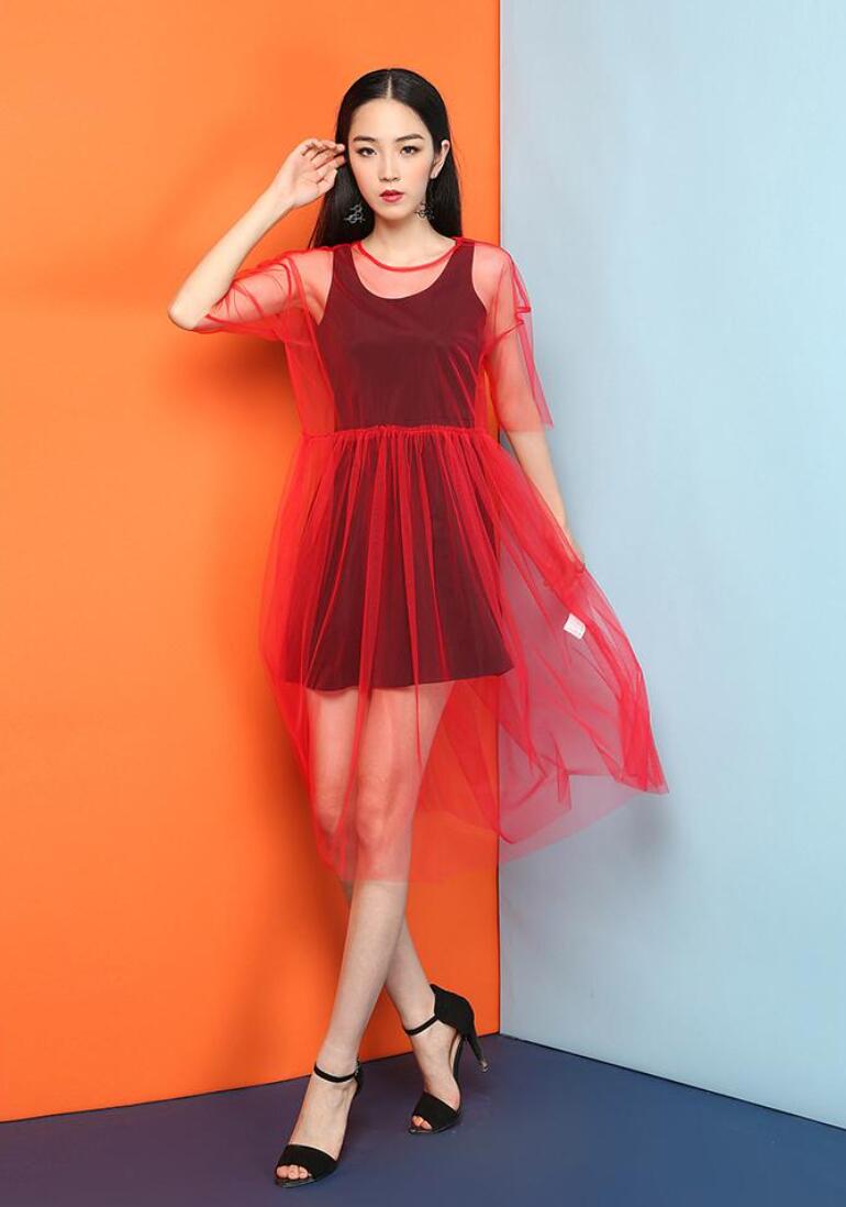内搭打底裙也可以解决连衣裙透光的问题,用这种方法一般建议选择吊带式打底裙,这种打底裙款式简洁,穿起来更轻松舒适。有个细节需要注意一下,内搭的打底裙尽量与透光的连衣裙色彩保持一致,不然凌乱的配色会导致穿搭的档次降低。