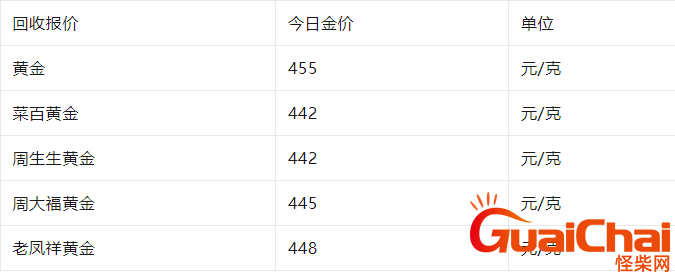 今日金价不变,黄金回收价格也是不变,价格与昨日一致。同时,每个品牌的回收价格也不一样,详见下表,数据仅供参考: