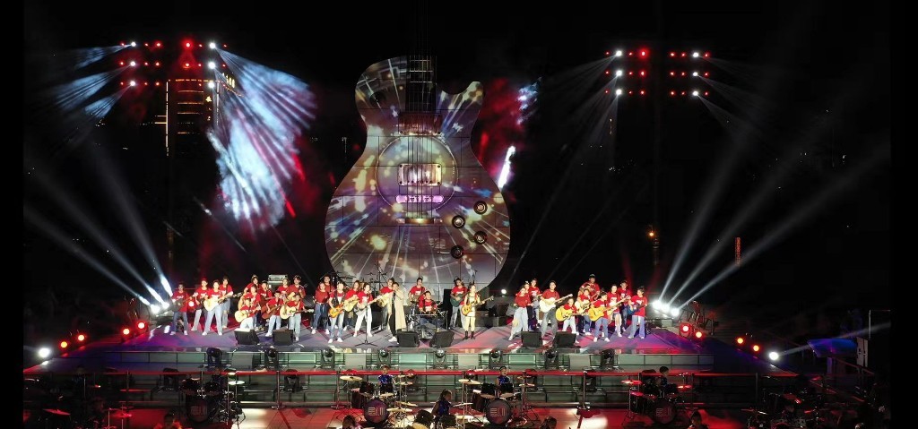 9月10日晚上,集安市鸭绿江畔激情摇滚、热力四射、万头攒动,随着大吉他主题广场落成启动,集安市再添一座地标性建筑,成为这座城市新的旅游打卡地。