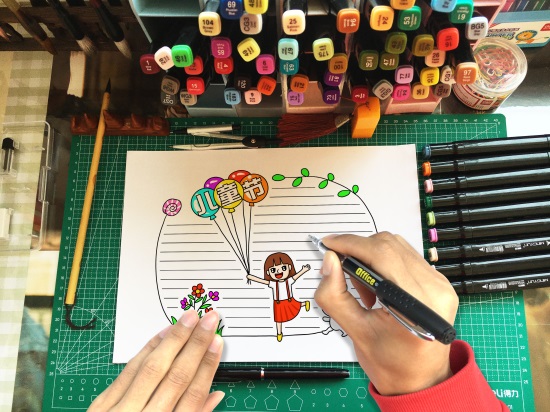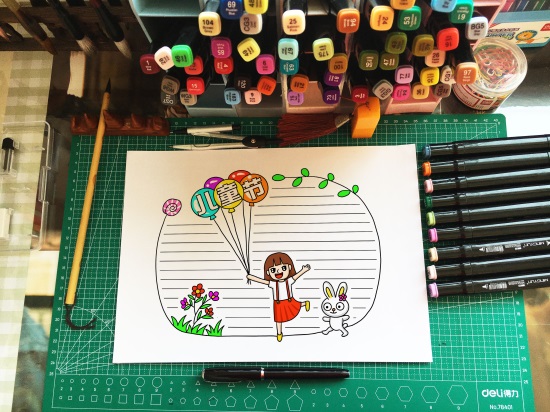最后,我们用马克笔给手抄报涂上颜色,一款“六一儿童节”手抄报就画好了。