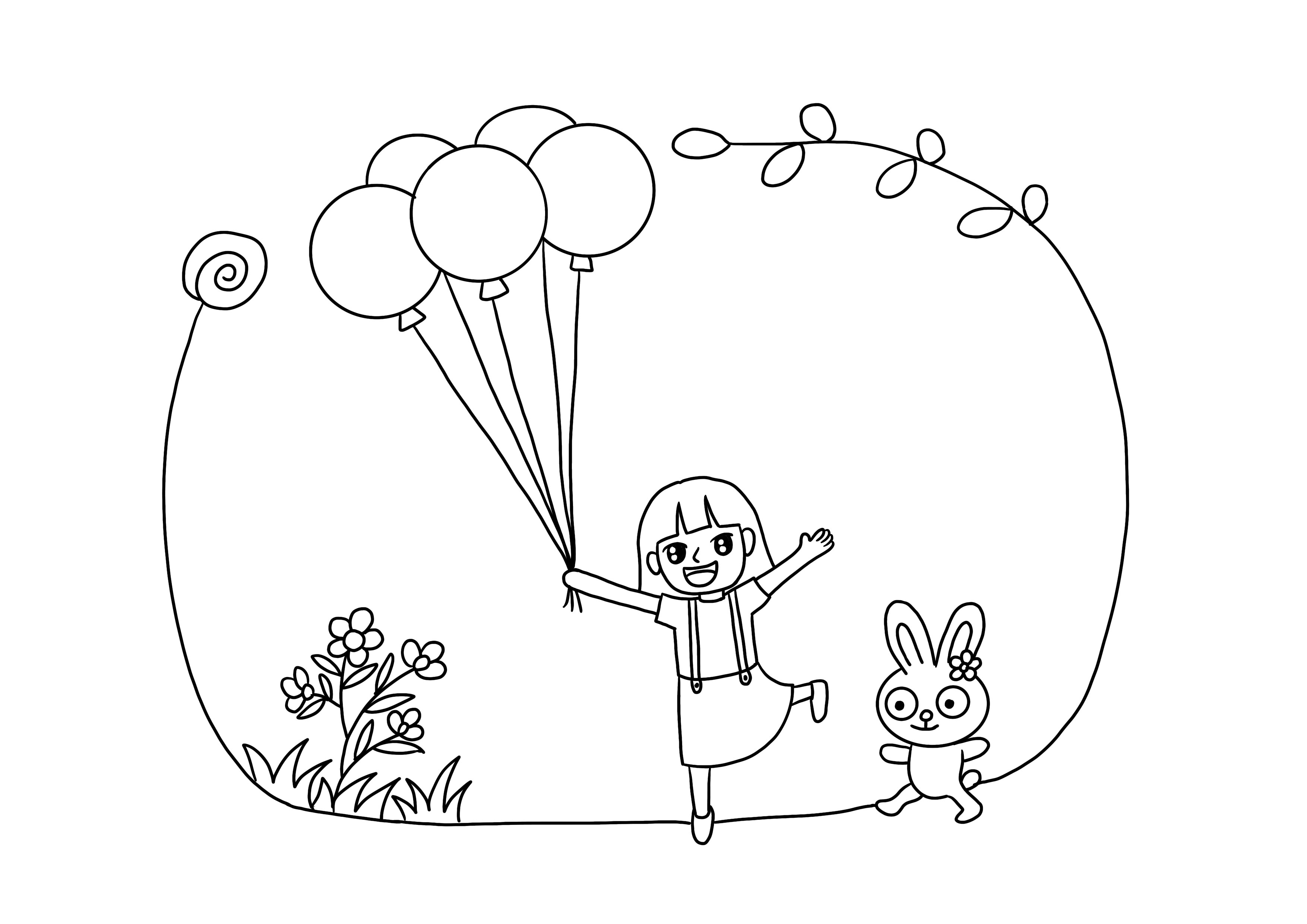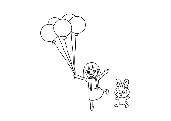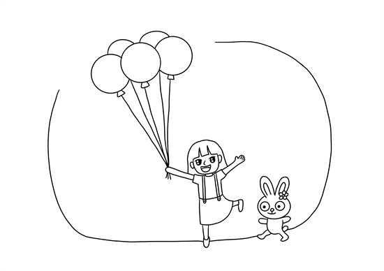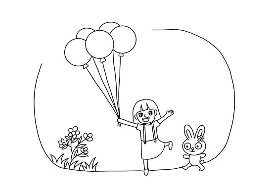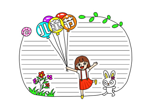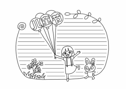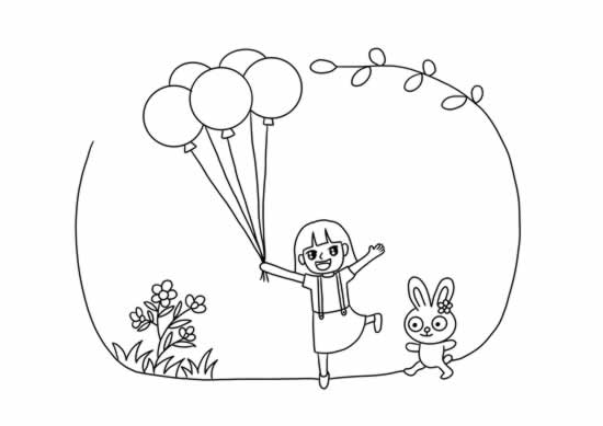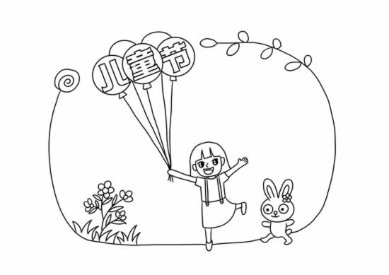 在小女孩手中画上几个气球,气球代表小女孩的童真与梦想,是儿童节手抄报的常用元素。
