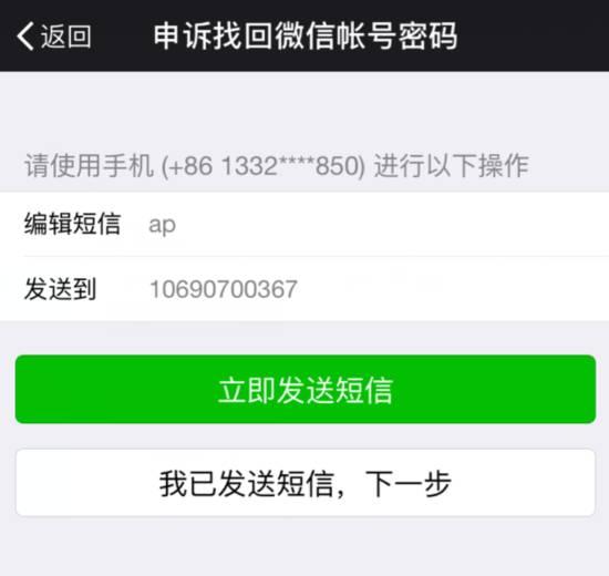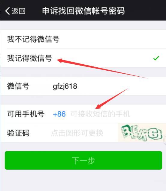 开始申诉后选择“我记得微信号–输入可接收短信的手机号”(不能和绑定微信的手机号同一个)