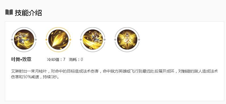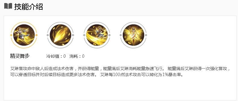 这个可以说是艾琳的输出核心了,在前中期需要依靠被动的强化普攻伤害去消耗敌方血量。在中后期则叠加自己的法强来触发更高的暴击率。