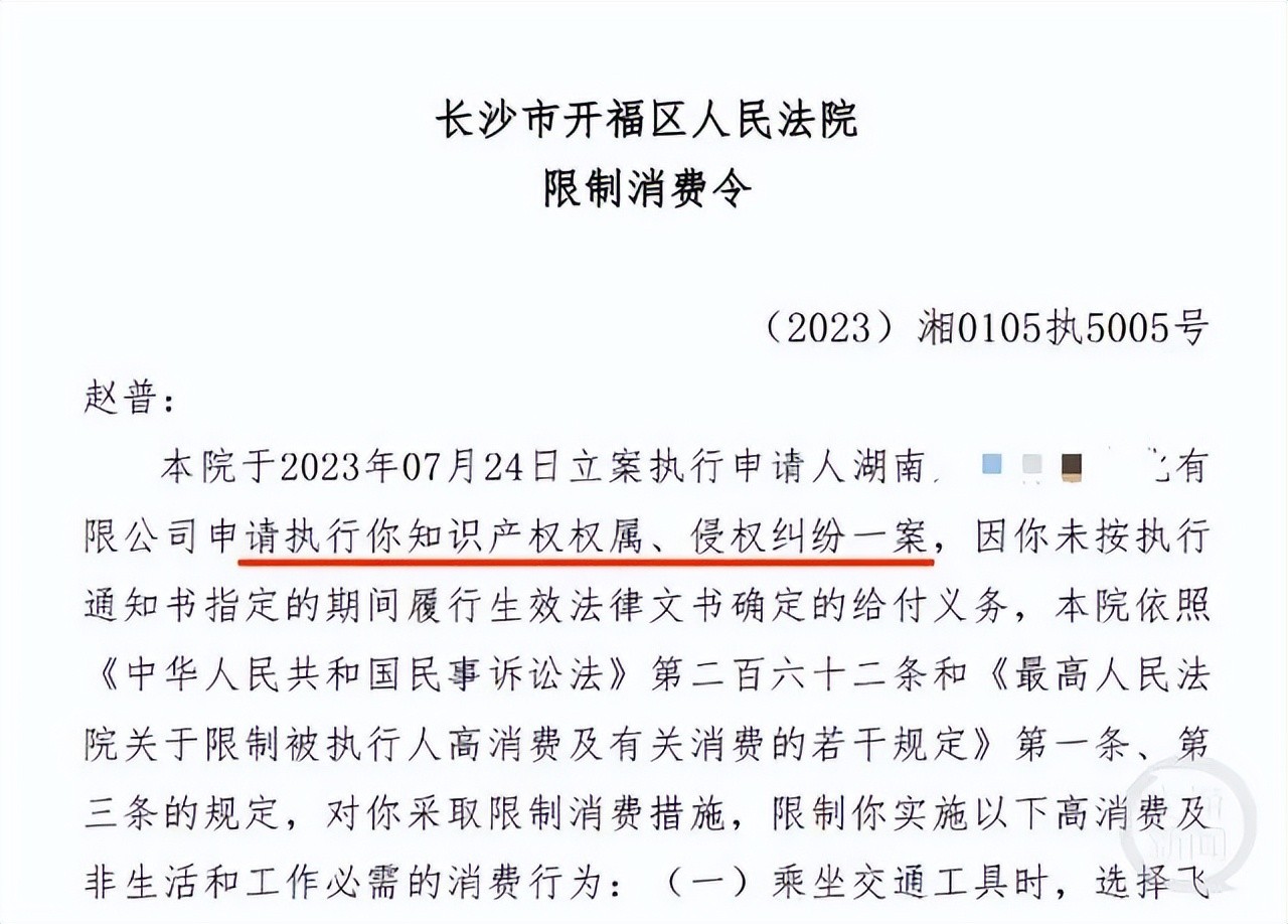 赵普回应称确有侵权纠纷一事:“内容侵权纠纷案子判下来后,我们就找了律师处理这个事情,罚金我们第一时间就已经付给对方公司了,后来还是被‘限高’。昨天相关解除‘限高’的证明材料才拿到手。”