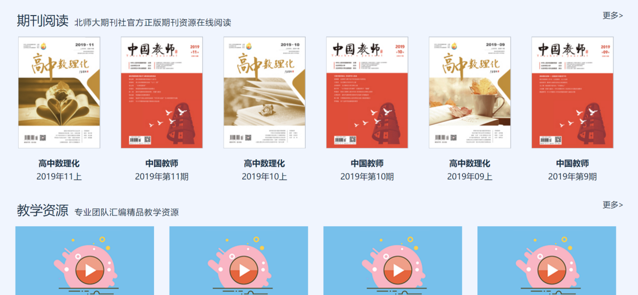 京师教育资源网(网址http://www.jsjyzy.com)内涵盖期刊阅读和教学资源两大板块。用户可在线免费阅读整本期刊,当前共有《高中数理化》《中国教师》两种期刊。还拥有北师大版小初高全学科的教学和学习资源,这些资源既可以在线阅读,也可以下载至本地使用。
