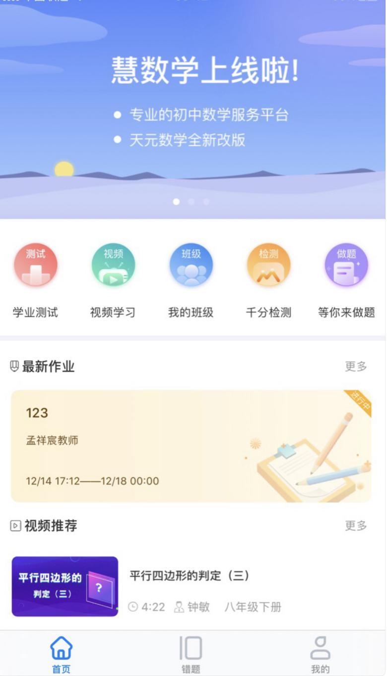 通过app,学生可进行视频学习、学业测试、加入班级与老师互动、接收和提交老师布置的作业。此外,app内还拥有错题本、学情等板块,帮助学生查漏补缺,及时全面掌握个人的学习情况。