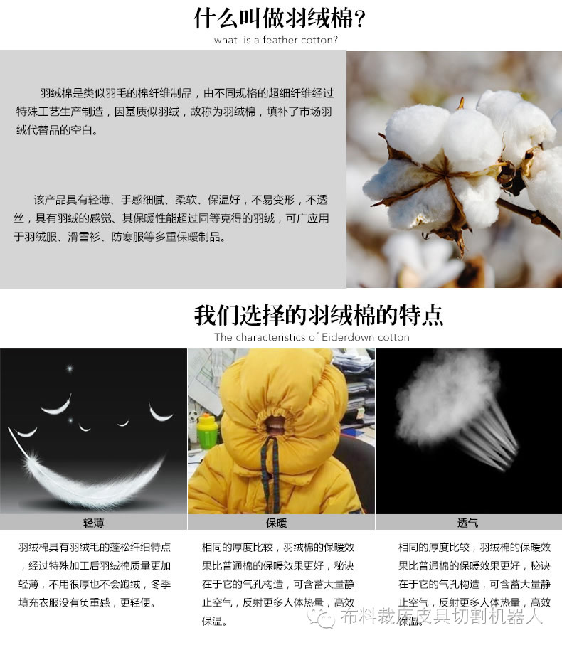 所谓的羽绒棉,其实就是中空棉,但并不是真正的棉花,而是以中空涤纶作为填充物的,因为空气是隔热的,所以具有一定的保暖性。羽绒棉是天然羽绒最常用的替代品。