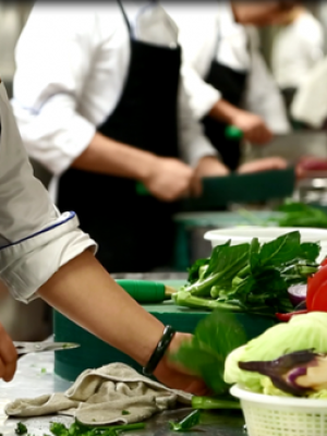 “烹”就是煮的意思,“饪”是指熟的意思。狭义地说,烹饪是对食物原料进行热加工, 将生的食物原料加工成熟食品;广义地说烹饪是指对食物原料进行合理选择调配, 加工治净, 加热调味,使之成为色、香、味、形、质、养兼美的安全无害的、利于吸收、益人健康、强人体质的饭食菜品,包括调味熟食,也包括调制生食。