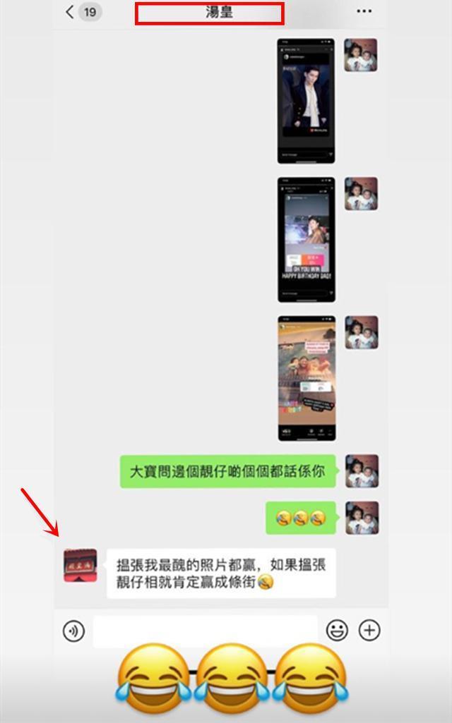 没多久,汤君慈的家姐也就是汤镇业的长女汤爱嘉也在社交网发文为爸爸庆生,还贴出一张某特效软件检测爸爸年轻时旧照与弟弟汤君慈近照对比图,结果是“爸爸汤镇业大胜”!此外,汤爱嘉还分享出一家人在社交软件中聊天的截图;看到女儿晒出的对比结果,汤镇业亦是开心不已,还调侃称找了一张最丑的照片都比儿子帅,要是帅一点的还不秒杀啊?