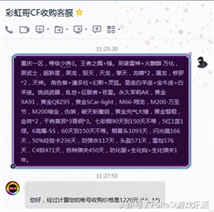 下面这个玩家向彩虹哥的客服咨询一下自己的CF小号的估价,号上只有一把修罗