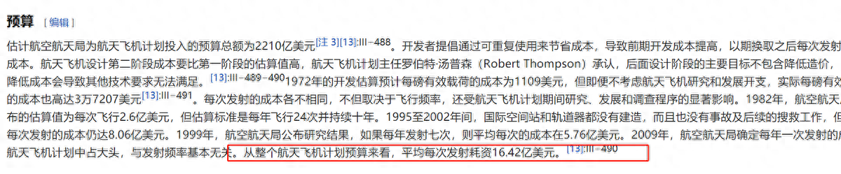 再加上几十年设备的折旧费,维护的费用,平摊下来,平均一次的发射成本,竟然高达16.42亿美元,这已经比一次性火箭发射的费用还要高。