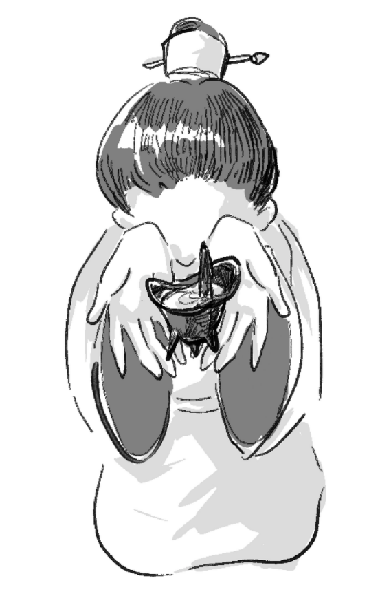 再者,将如此美好的物品以跪姿献上,这样的行为是百姓心甘情愿的,而非被强迫。由此可知,被跪着献酒的对象、即古代的贵族,他们不仅仅有权有势,还