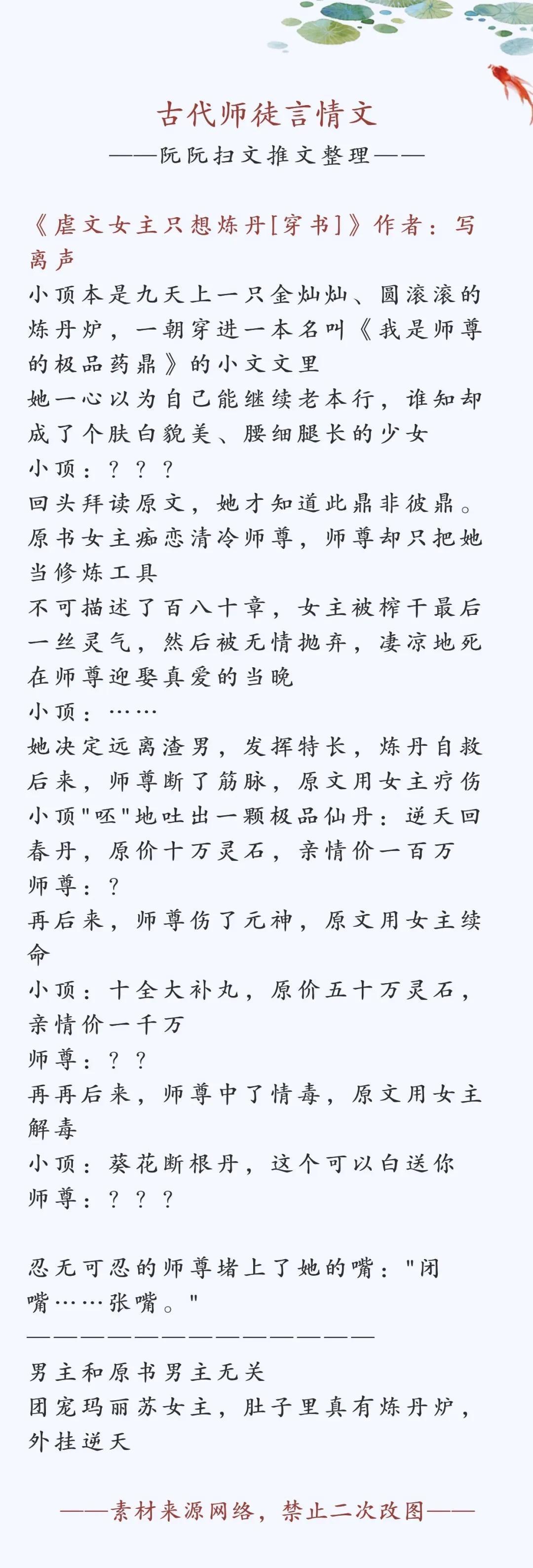 《虐文女主只想炼丹[穿书]》作者:写离声