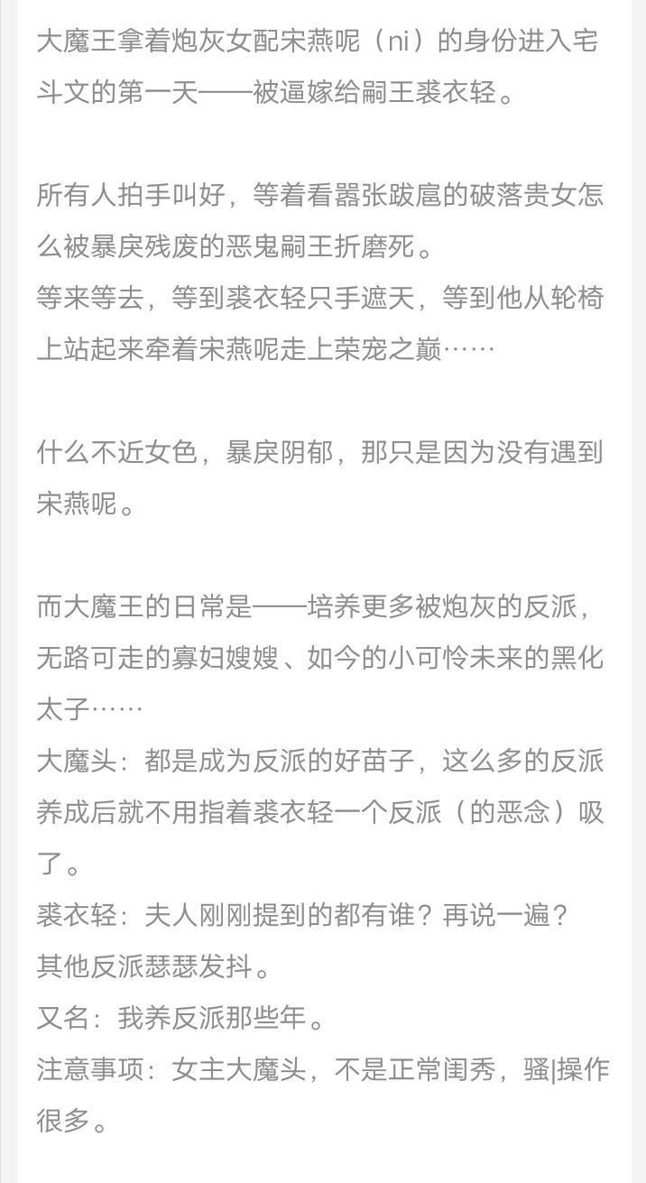 *系统战战兢兢地为她挑选好世界:您看看这篇宅斗文,里面的大反派,美,惨,强,还是个双腿残疾的病娇,简直是反派的典范,只是他暴戾且不近女色......
