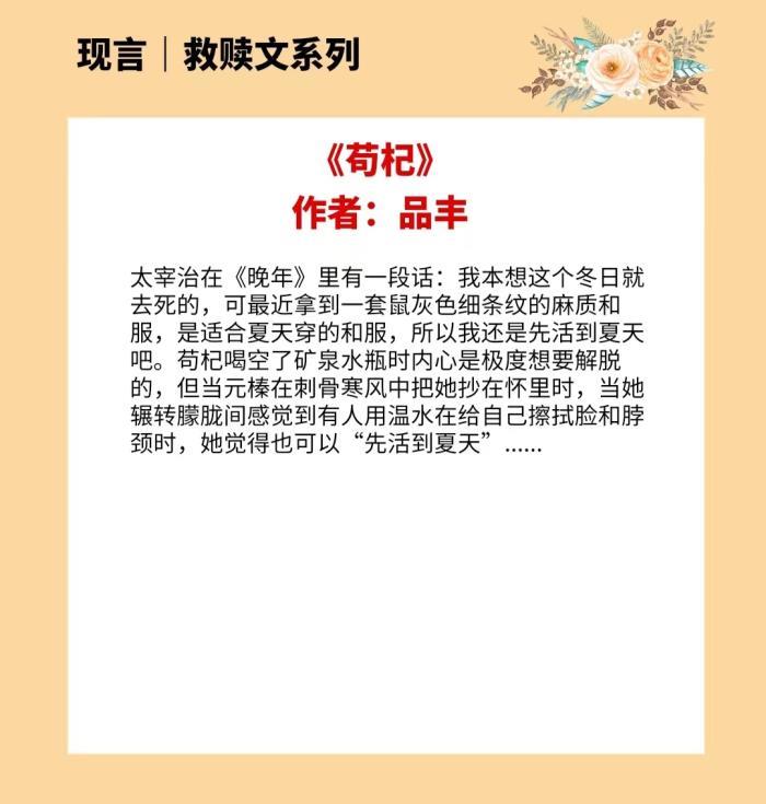 以上就是4本治愈救赎文的全部内容,喜欢这一类型的姐妹们赶紧看起来吧!