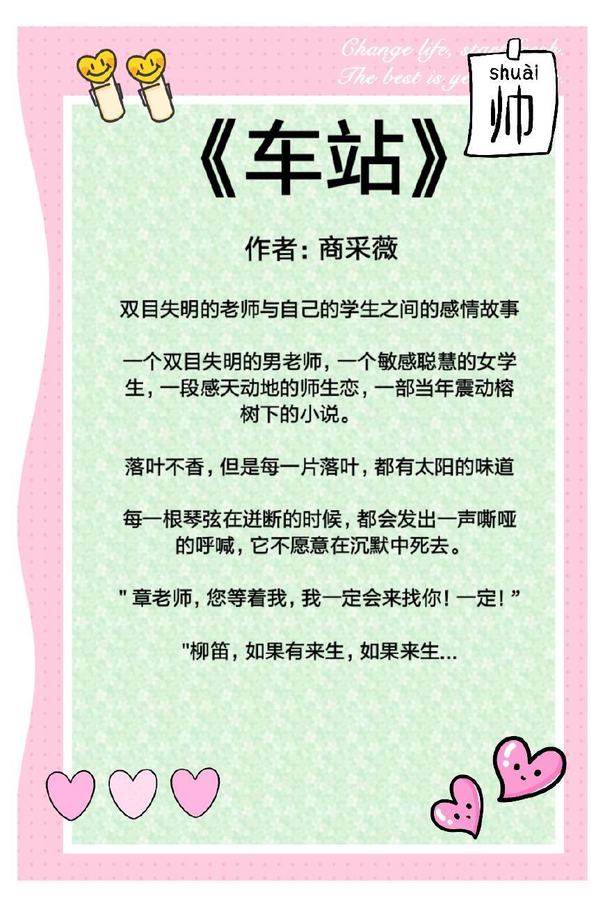 短评:纯洁、热情又晦涩的爱情,柳笛是敏感的,章玉是深沉的;柳笛在自己还不知道的时候就爱上了她的老师章玉,而章玉则沉默的爱着她,并且努力不让她爱上自己,虐心啊!看的时候哭的稀里哗啦的,希望他们在一起。最后半张没被烧掉的信:"柳笛,今生我能给你的,只有一个清白的名誉和一个美好的前程而已。可是,如果有来生,如果来生我能有一双明亮的眼睛,我会在这个车站上--等你!"让他们两人还没开始的爱情成为独自的爱情