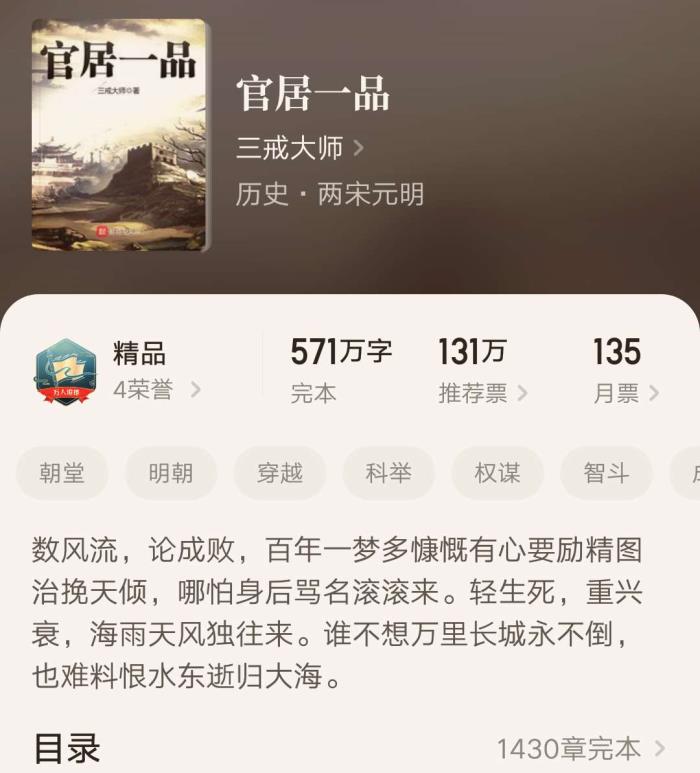 这是一本多年前便蜚声网文界的经典小说。小说不但史料考究,更是在剧情设定和人物塑造上有着惊艳之笔,在当时被誉为是与《唐砖》旗鼓相当的一部架空历史力作。但是小编觉得这本小说在情节叙述方面则更胜《唐砖》。所以看过《唐砖》还没有看过这本小说的书友,可以放心入坑了。