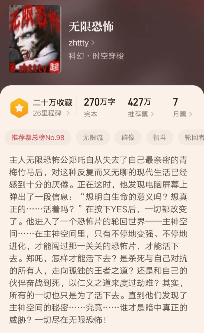 这本小说作为无限流的开山之作,直到如今都被书友奉为经典。小说开创性地设定了关于无限流的相关元素,推动无限流小说形式不断地发展和充实。而小说本身的很多设定也相当前卫,即使拿到现在来看也不乏惊艳。