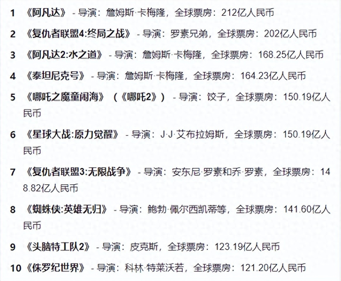 2. 2025全球票房十强:中国电影占据三席,好莱坞霸权松动