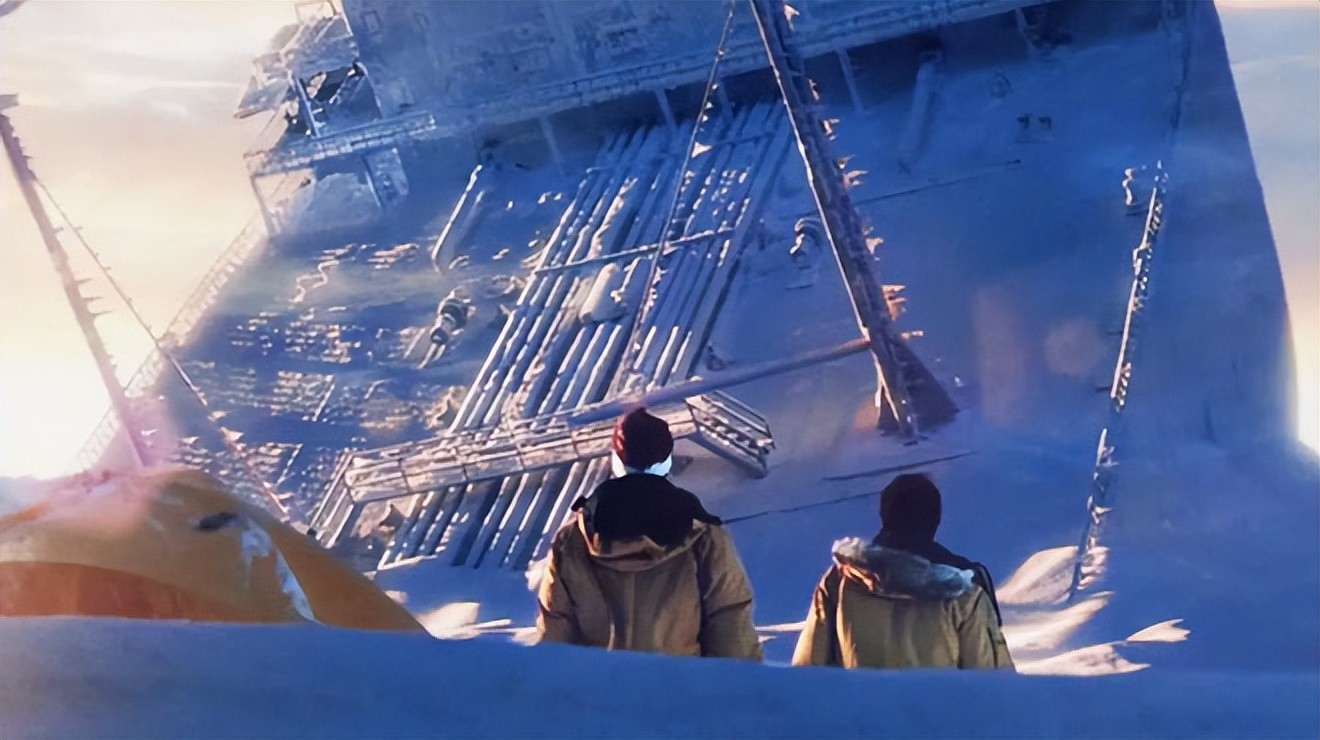 影片一开始气象学家杰克三人在冰上钻洞,突然冰面破了,有一个实习生掉了下去。救上来实习生后,杰克又飞奔过去抢救他们几个月的标本,这是他们的劳动成果,刚要回来,裂缝越来越宽,幸好杰克动作敏捷,回来时正好落在悬崖边缘,同伴将他拉了回来。