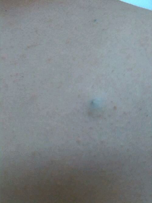 中心部位有针头大的黑点,蓝黑色,像针头粉刺,可挤压出豆腐渣的东西,内容物是皮脂和破碎的皮脂腺细胞,常有腐臭味。