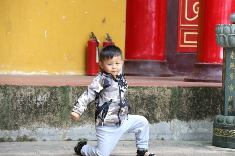 沿着石阶而上到了云石岩殿堂,依山而建,层次分明,有近代重修的雄伟大殿,金碧辉煌,更有保留历史沉淀古老庙宇,相辉相映,无不精彩的,小男孩们在此必有焕发起少林功夫梦吧!