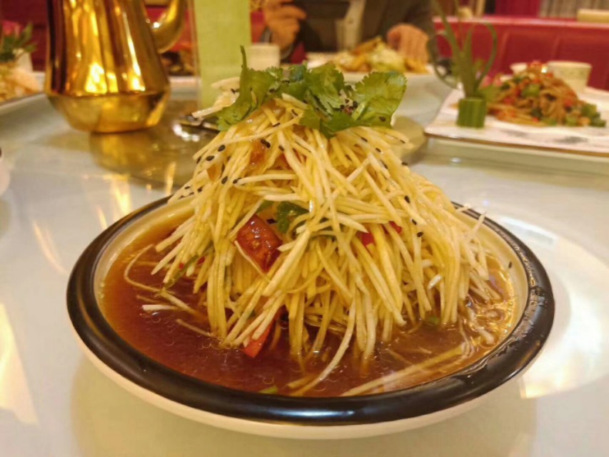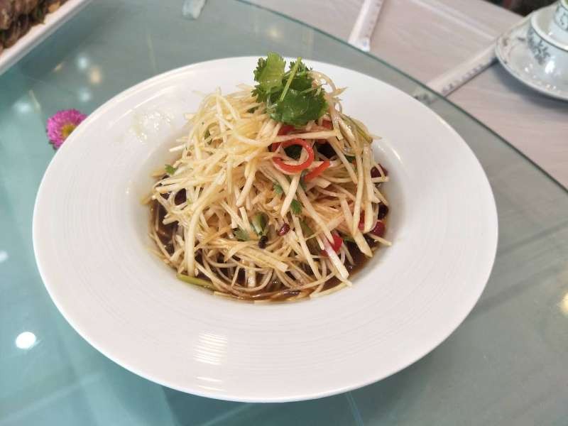 春节期间,与亲朋好友在餐厅吃饭,桌上的菜品,都有一道凉拌恰玛古。瓷盘中,白色的细丝,撒了点香菜和切碎的红辣椒,艳丽的色泽,看着都清新。用筷子挑一些放入口中,清脆爽口,很受大家的喜爱,每次都是光盘。