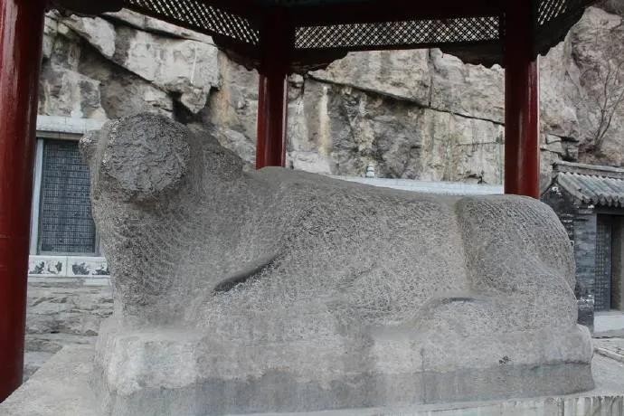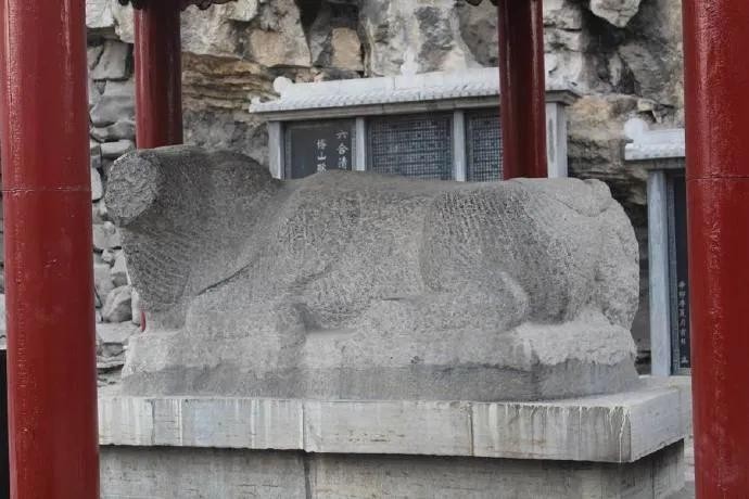 10、大殿西侧是院门可达后院。后院内有几通古碑,大约是碧霞元君祠的重修和功德,年代早者有清乾隆年,晚者直追2000年后,后院类似一个小花园,重要看头还有一个号称汉代的石牛,整体雄健有力,面目确已不甚清晰,确实难得的好东西。
