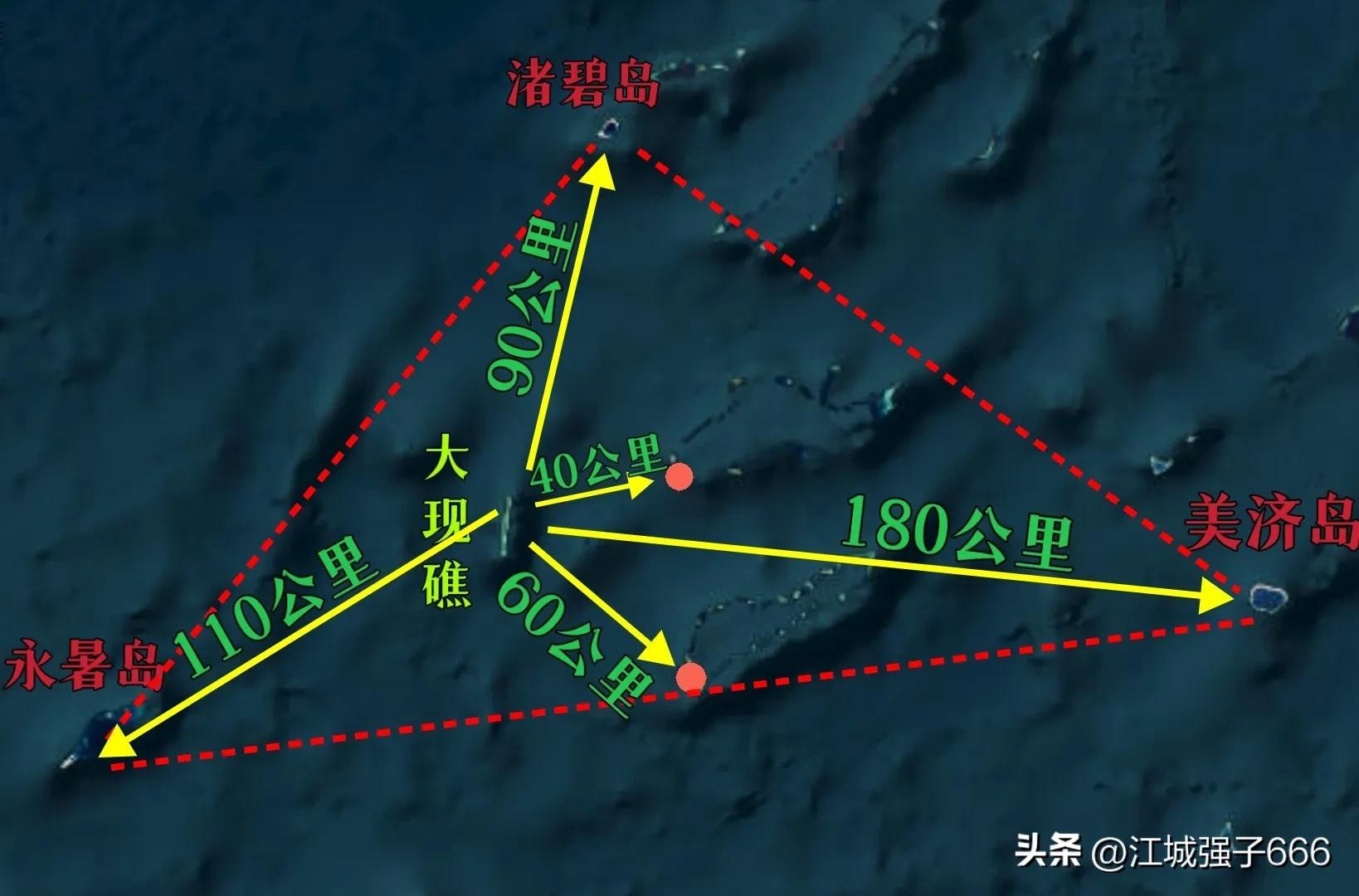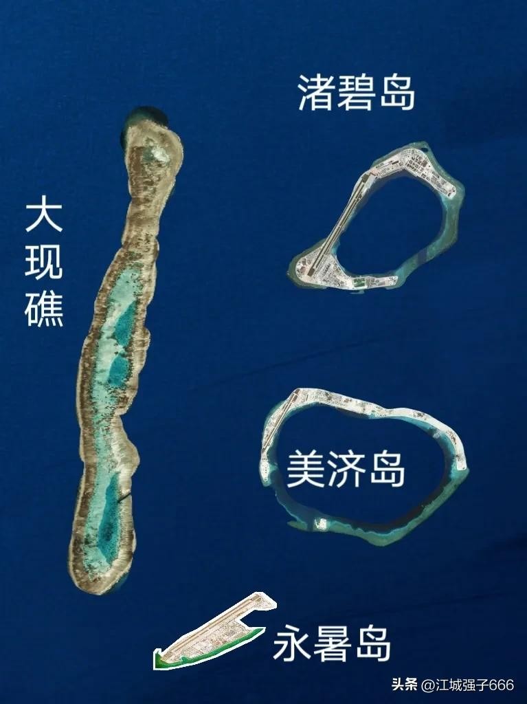 大现礁与三大人工岛对比