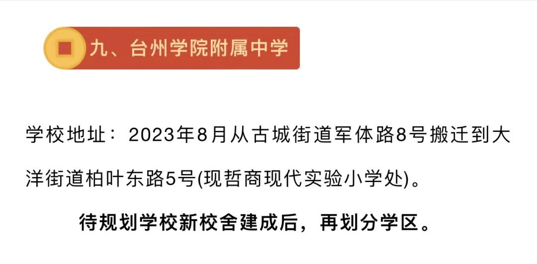 2023年下半年台州学院附中搬迁到哲商现代实验小学区块。