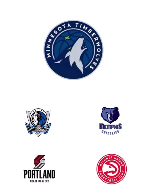 明尼苏达森林狼、达拉斯独行侠、波特兰开拓者、孟菲斯灰熊、亚特兰大老鹰。