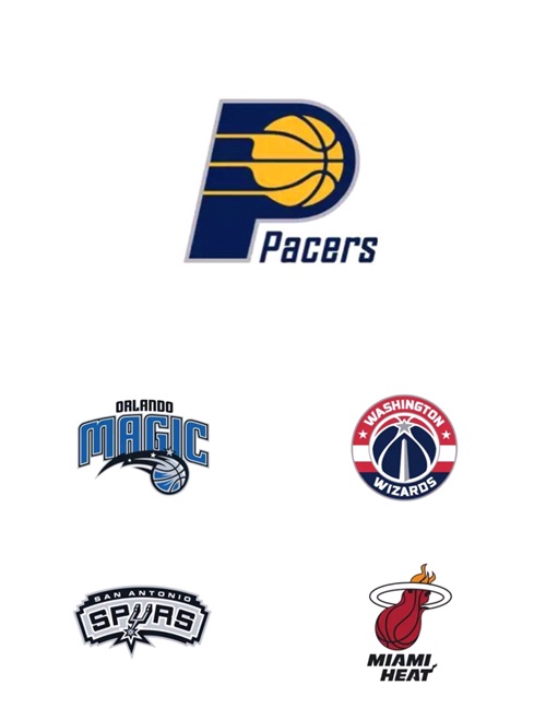 印第安纳步行者、奥兰多魔术、圣安东尼奥马刺、华盛顿奇才、迈阿密热火。
