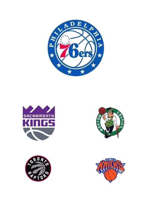 费城76人、萨拉门托国王、多伦多猛龙、波士顿凯尔特人、纽约尼克斯。