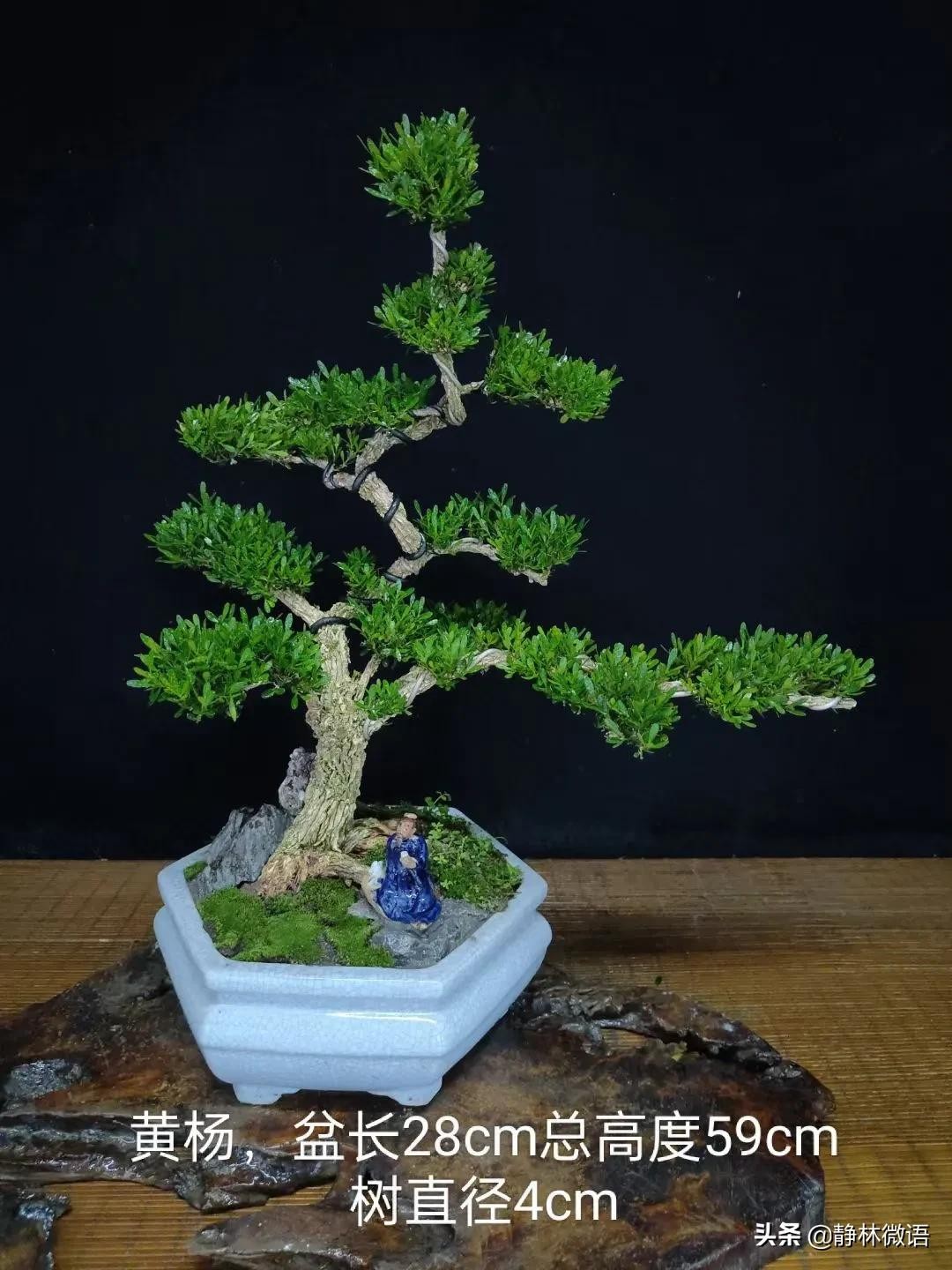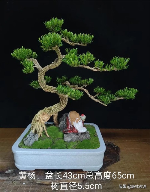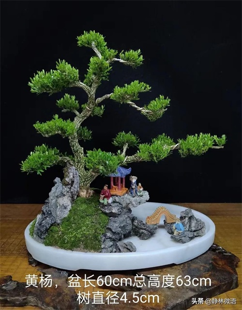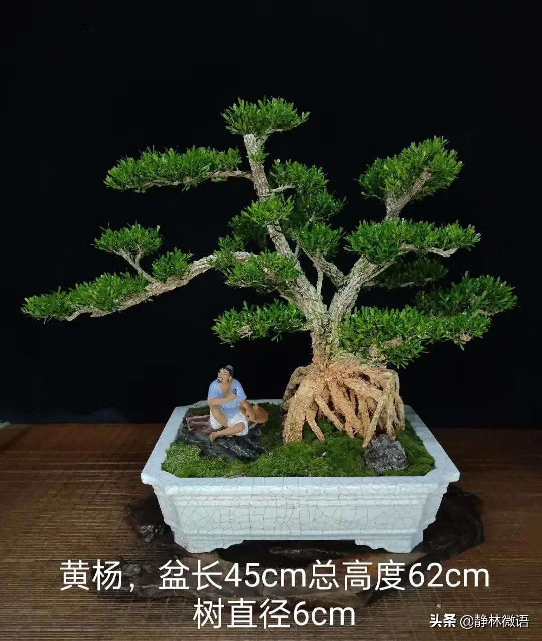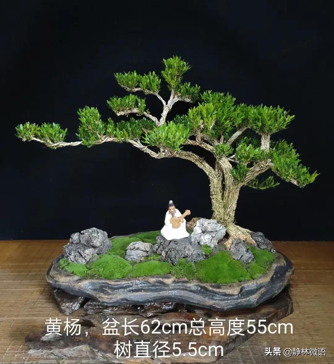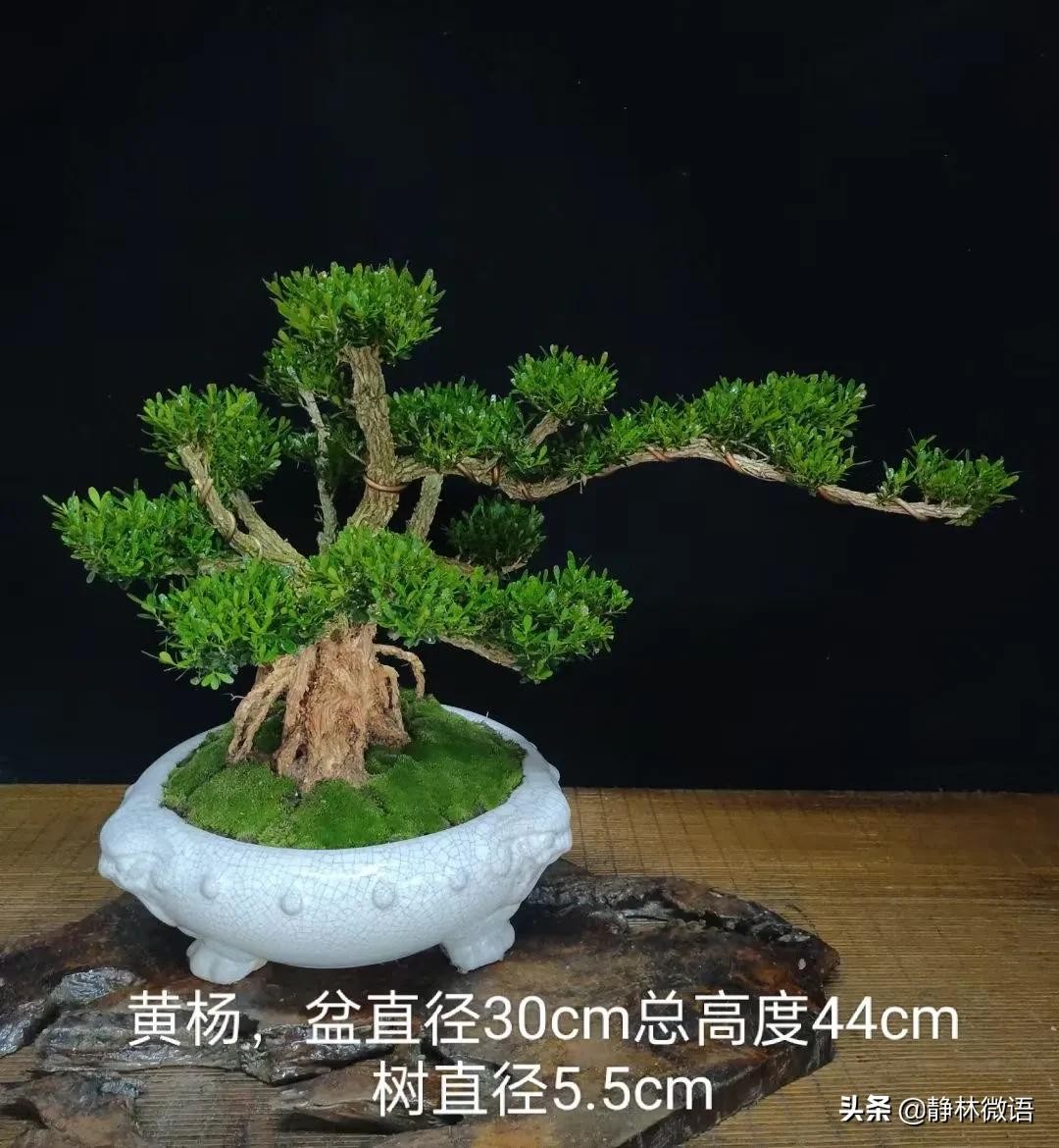 黄杨盆景较耐寒,萌发性强,粗扎细剪,制成云片状或馒头状,或加工成自然树形。主干则顺其自然之势,制成斜干式或卧俯式。有的黄杨盆景点缀秀石,则成“黄杨俯”。 黄杨盆景春季嫩叶初发,满树嫩绿,十分悦目。