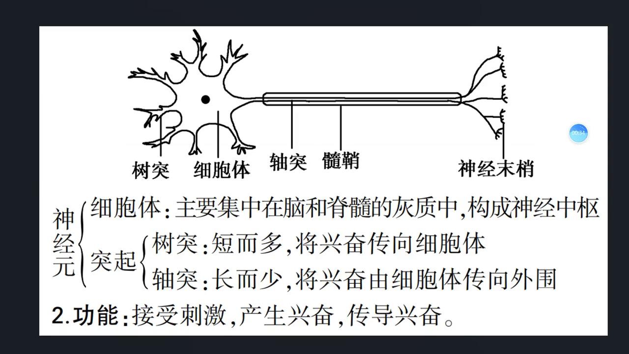 ·第二部分看一下神经元的功能,它的功能大体分为三部分:接受刺激、产生兴奋、传导兴奋。